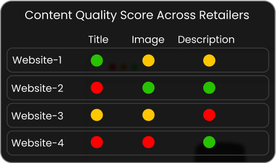 Elevate your content quality with our content audit solution. We meticulously examine hygiene factors such as product titles, descriptions, images, keywords and more across online channels to ensure your content is top-notch. Our solution also assesses pre-defined guidelines, pinpointing areas for improvement, enabling you to enhance your catalog quality and overall content performance.