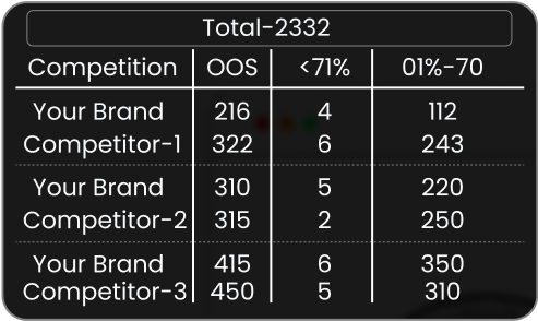 Gain in-depth insights on competitor pricing through product portfolio algorithms and identify competitor assortment gaps, areas of strength and vulnerability.